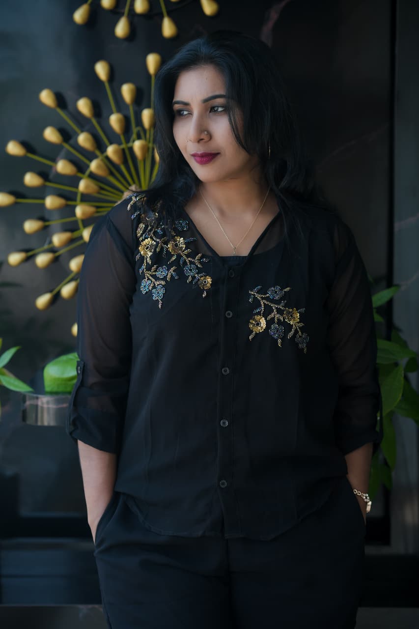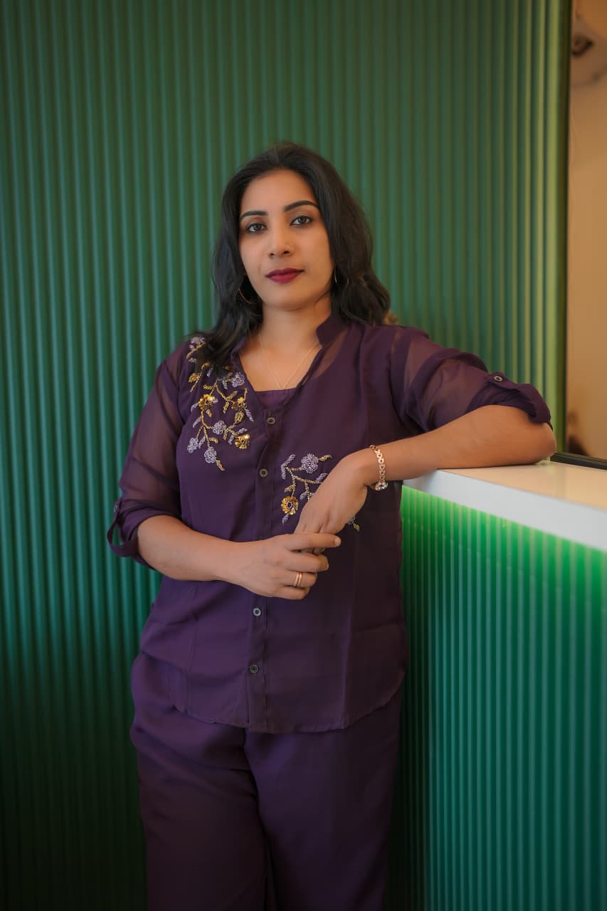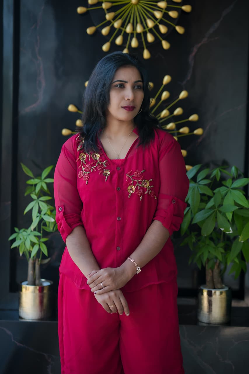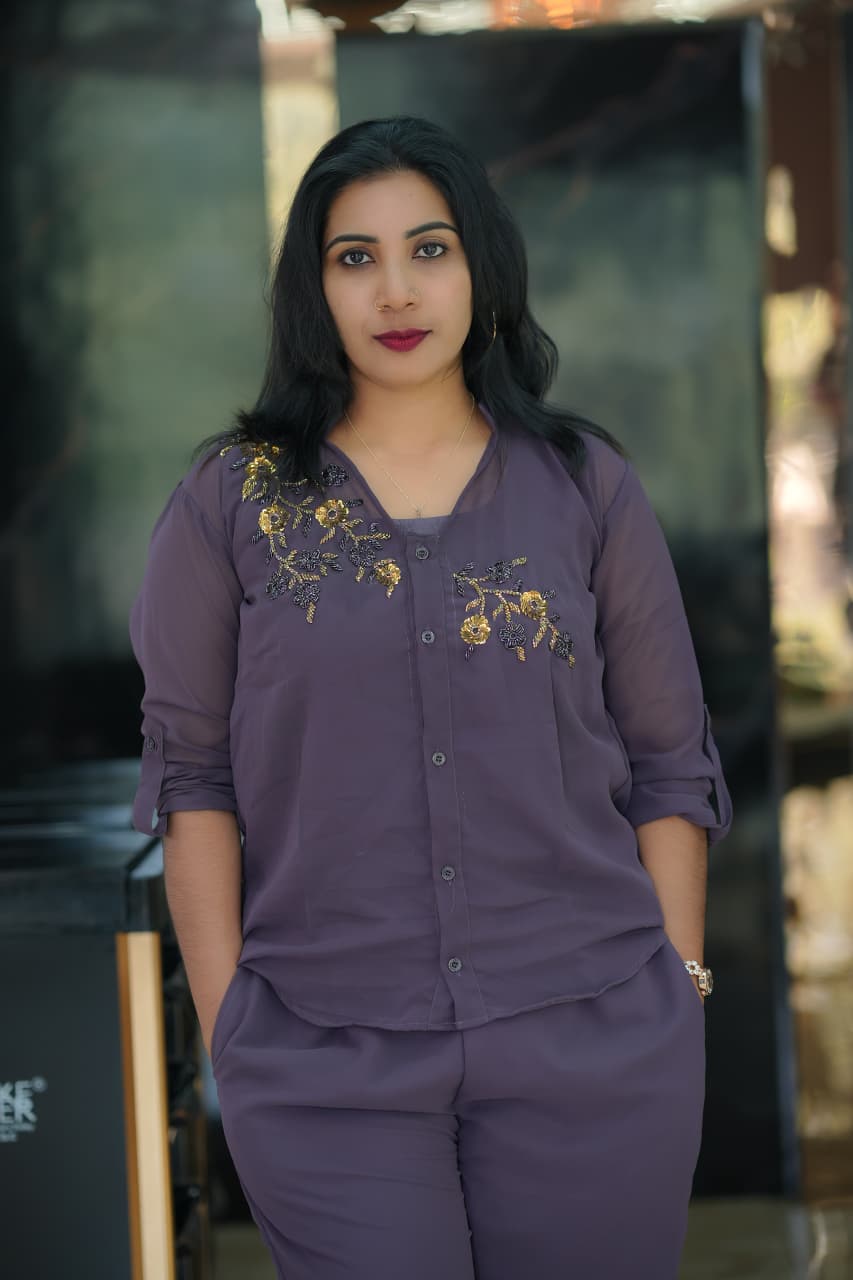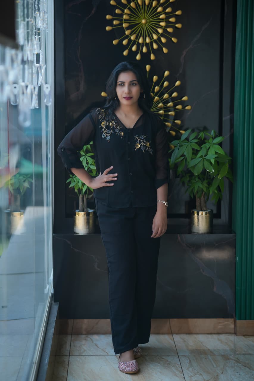 ✨🔥Fabric Georgette PARTY WEAR Cord set..shirt,Pant and Inner set (Hand work)