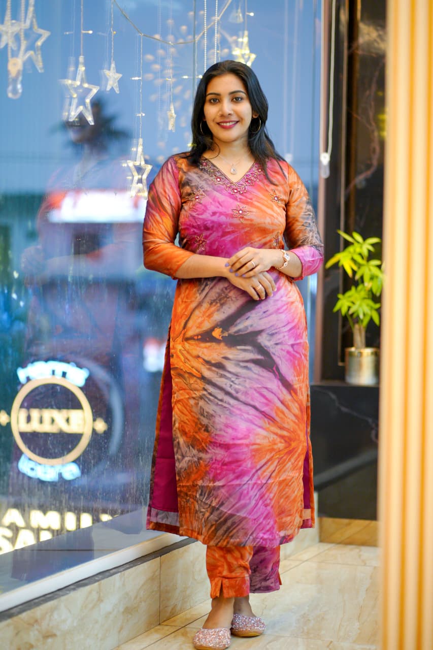 ✨🔥Fabric  Premium  Shibori printed Georgette 2 peice set  #Top and Bottom#Handwork