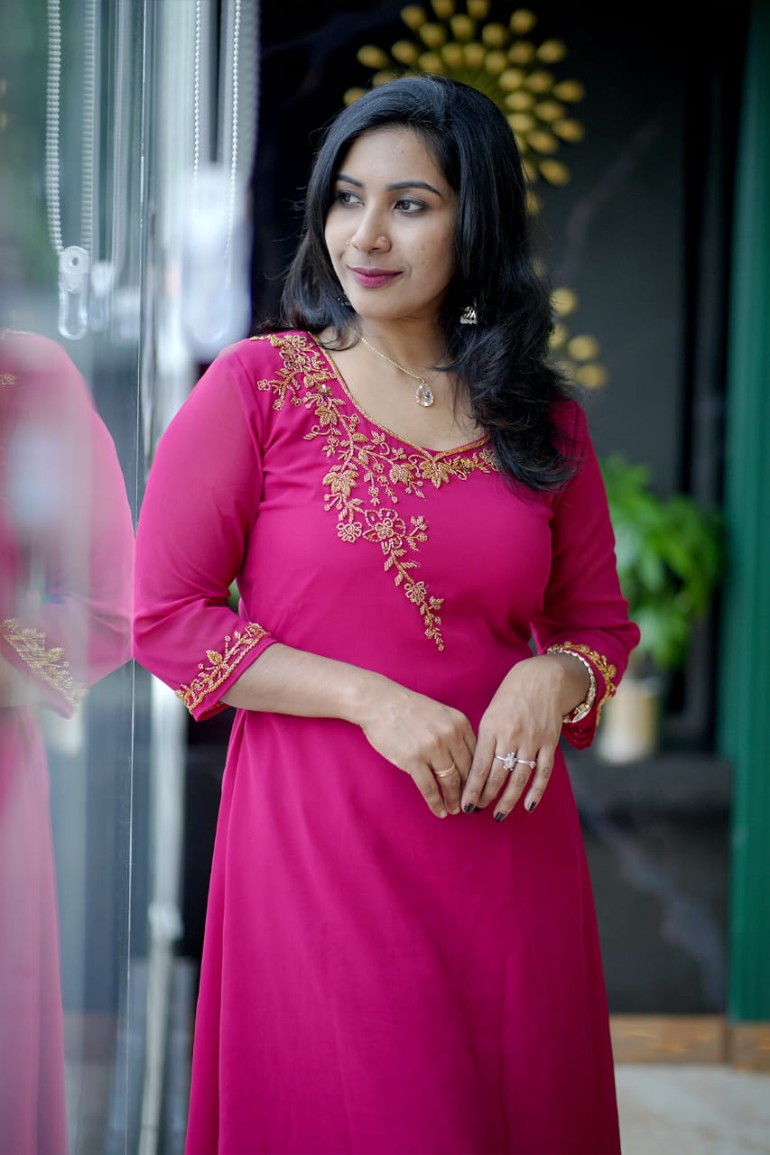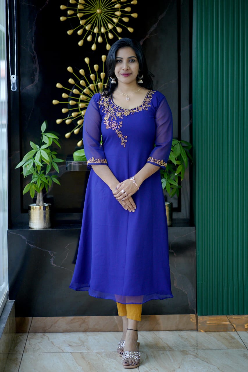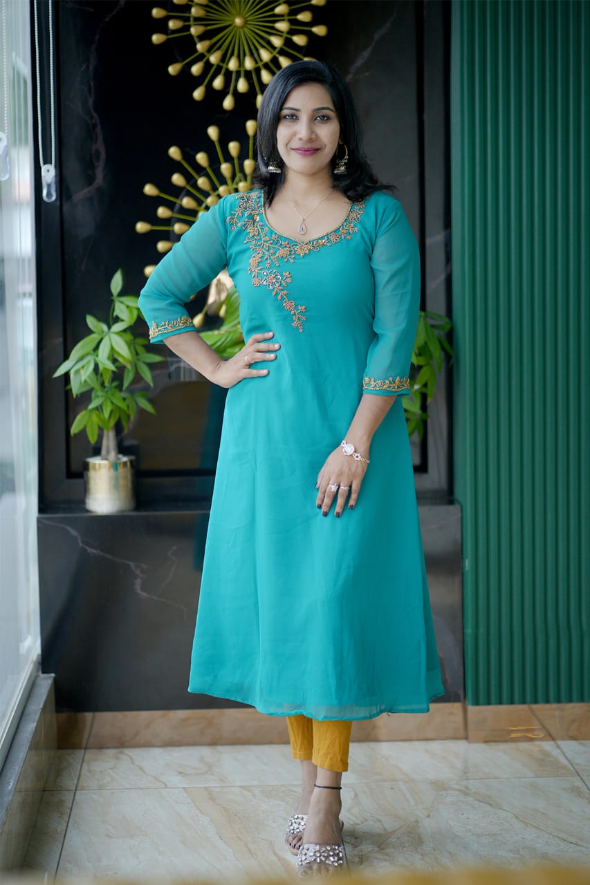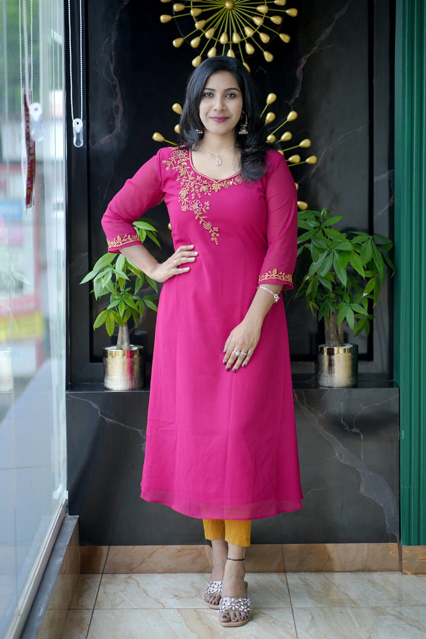 Fabric Georgette Hand work Kurthi (Aline)