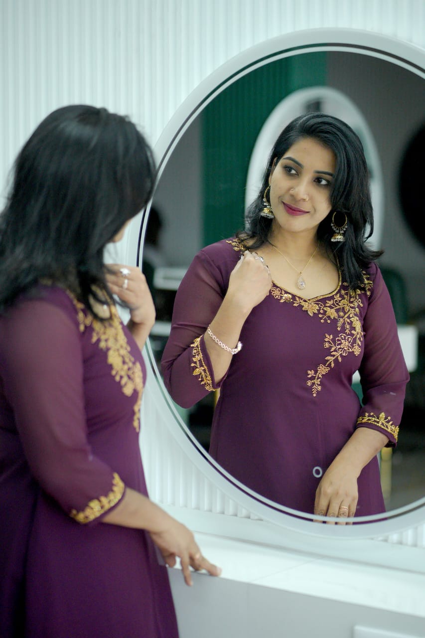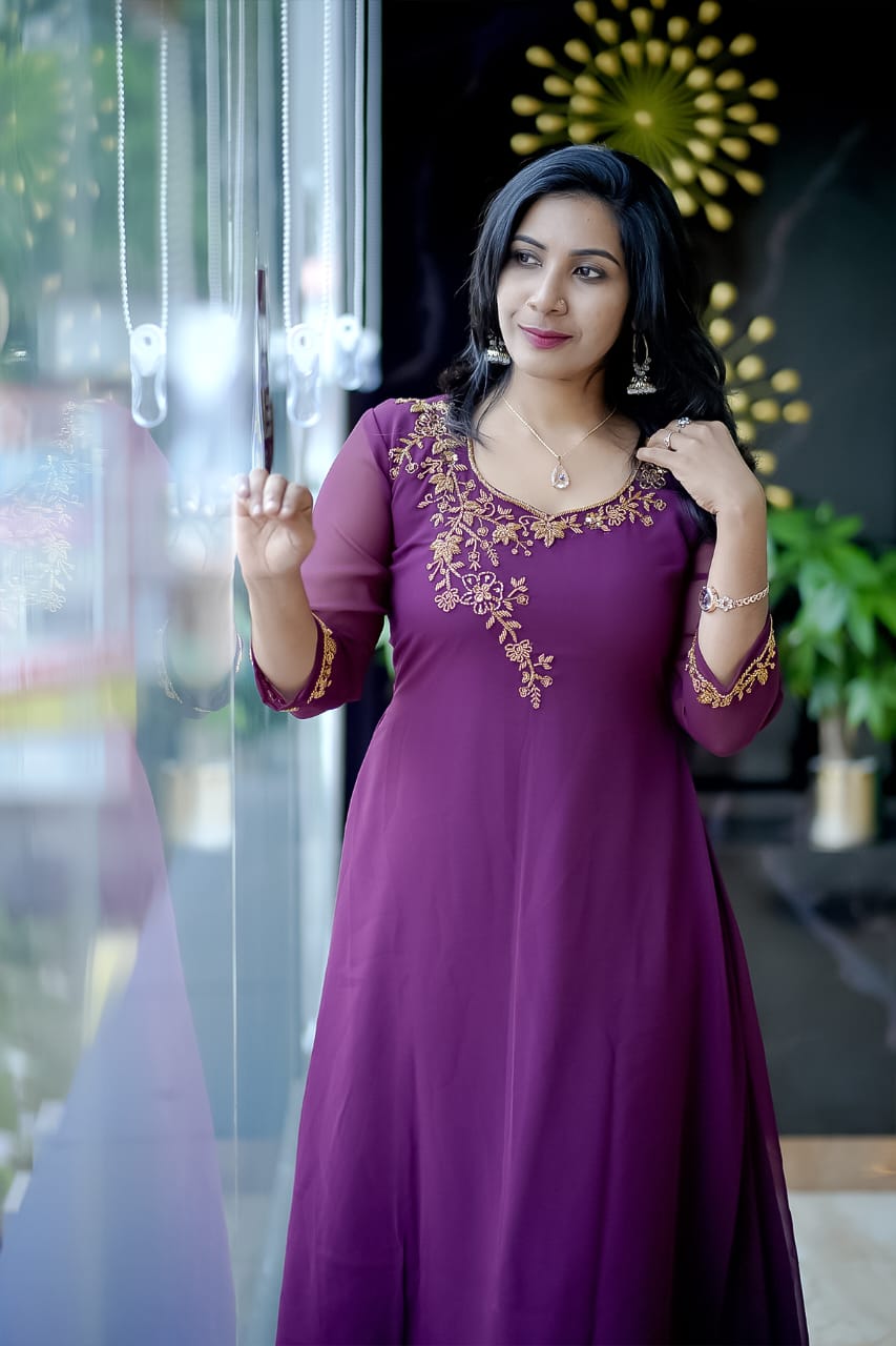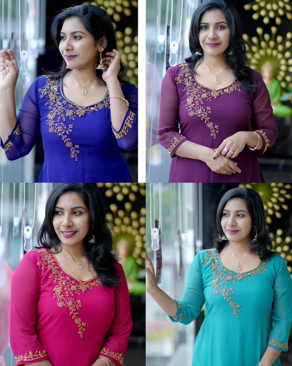 Fabric Georgette Hand work Kurthi (Aline)